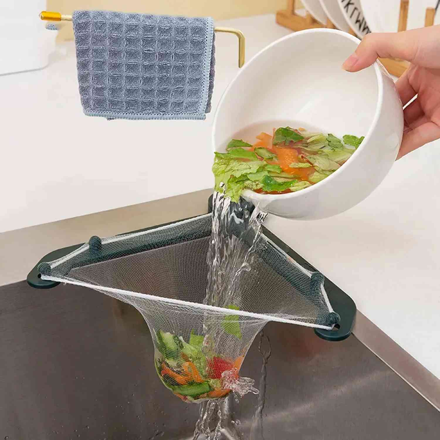 🧺 تفالهگیر گوشه سینک استنددار – سبد فیلتر چندکاره آشپزخانه