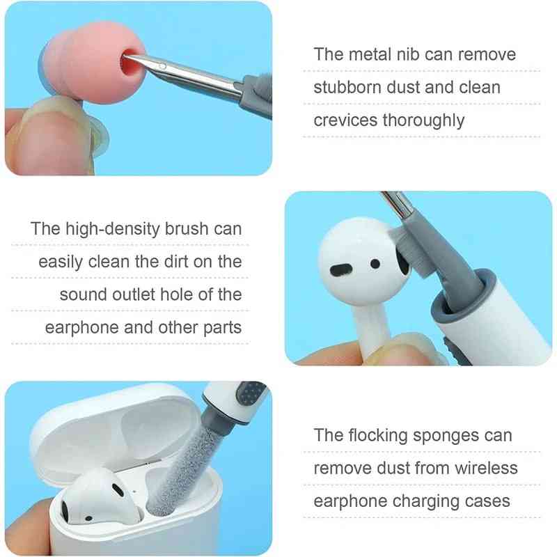 این ست مخصوص تمیز کردن کیبورد، هدفون، ایرپاد، دریچه اسپیکر، پورت شارژ، موبایل و لپتاپ طراحی شده تا آلودگیها، پرزها و گرد و غبار را از عمیقترین شکافها بیرون بکشد.