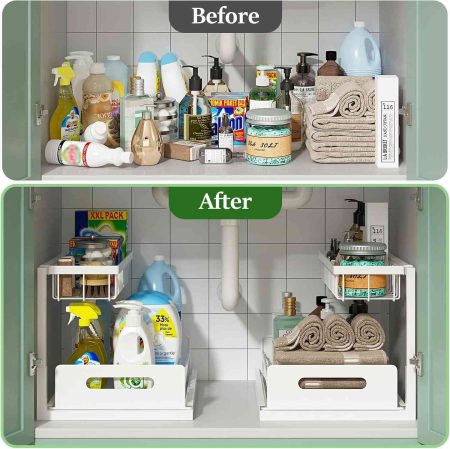 با نظم‌دهنده زیر کابینت کشویی دو طبقه، فضاهای خالی زیر سینک یا کابینت خود را به بهترین شکل منظم کنید. طراحی مدرن، جنس مقاوم و دو رنگ محبوب سفید و مشکی باعث می‌شود این ارگانایزر با هر سبک دکوراسیونی هماهنگ شود — از آشپزخانه مدرن گرفته تا سرویس بهداشتی مینیمال.