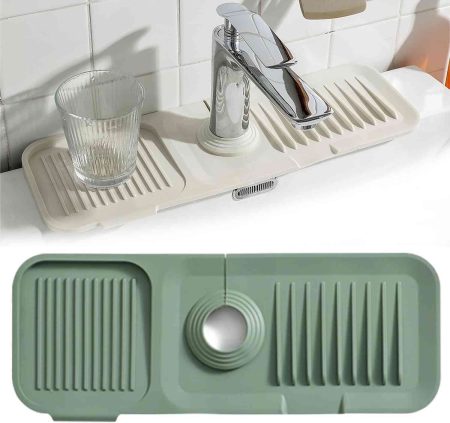 یکی از مناظری که در آشپزخانه به شدت به چشم میخورد،دکوراسیون آن است که سینک ظرفشویی نقش بسیارموثری در این زمینه دارد.چراکه شما هرقدر به دکور آشپزخانه خود اهمیت دهید،سینک ظرفشویی فضای قابل توجهی به خود اختصاص داده است. پد آبگیری شیر سینک سیلیکونی یکی از لوازم پرکاربرد و خلاقانه برای آشپزخانه های شیک و مرتب می باشد،چراکه جلوه ی ظرفشویی شما را دگرگون میسازد. این آبگیر دور سینک به راحتی از پاشیدن آب زیر شیر آب جلوگیری میکند که خود مانع از خوردگی و ظاهر زشت شیر آب سینک میشود. این آبگیر حتی به خوبی به وسایل و لوازم موردنیاز شما در سینک ظرفشویی نظم و زیبایی میبخشد. پدسیلیکونی آبگیر و نظم دهنده برای اکثر شیرآلات و خانه ها مناسب است.این پد از خیس بودن اطراف سینک شما جلوگیری کرده و ظاهری جذاب و تمیز به سینک آشپزخانه میبخشد. همچنین میتوانید در روشویی های سرویس های بهداشتی از این پد استفاده نمایید و وسایلی از قبیل صابون ، مایع و … را روی آن قرار دهید تا علاوه بر رعایت بهداشت و نظم ، جلوه زیبایی نیز به محیط دهید. با این پدسیلیکونی دیگه نیازی به خشک کردن چندباره ی اطراف سینک بعد از هربار استفاده نمی باشد و همچنین وسایل موردنیاز شما جای مشخص دارد.