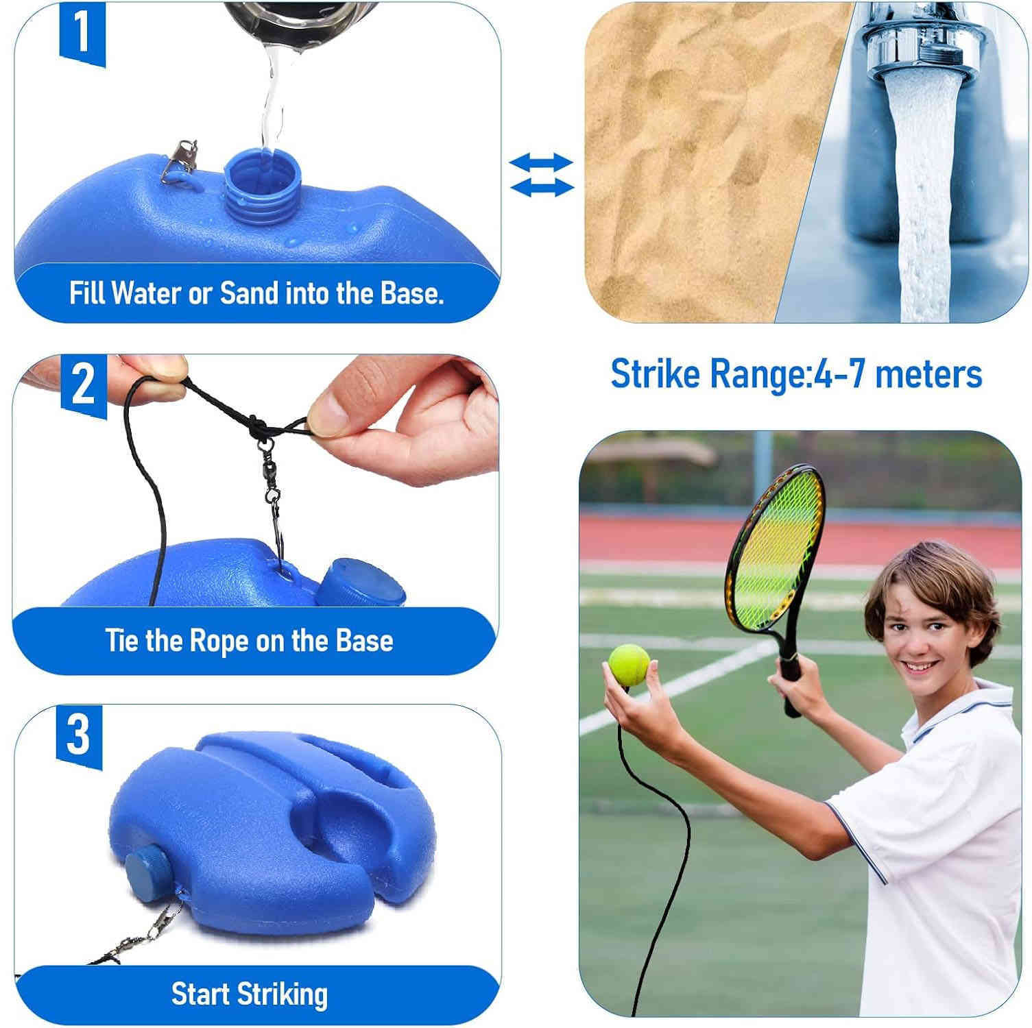 گجت تمرین تنیس Tennis Trainer بدون راکت عرضه میشه و شامل یک توپ تنیس، کش ۵ متری و مخزن قابل پرکردنه. بعد از هر ضربه توپ برمیگرده و میتونی بیوقفه تمرین کنی.